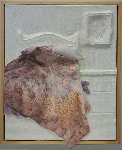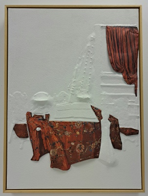 An ongoing collection of works that combine pale, low relief canvasses with images,